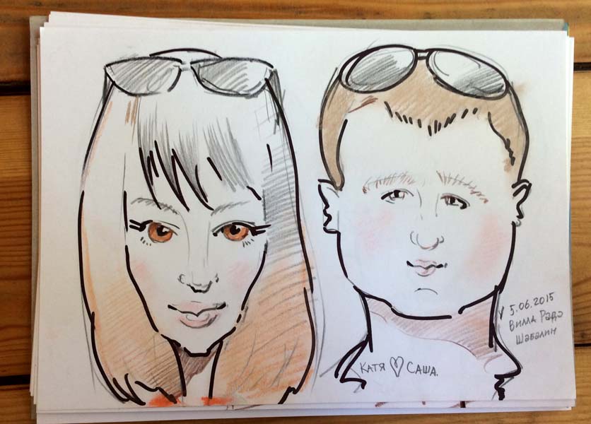 Графический набросок Саши и Кати фломастерами